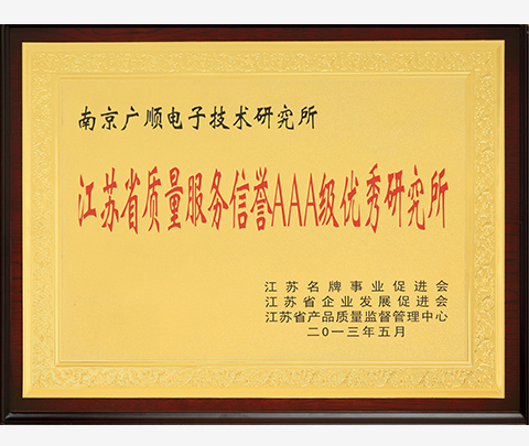优秀研究所江苏省质量服务信誉3A级优秀研究所