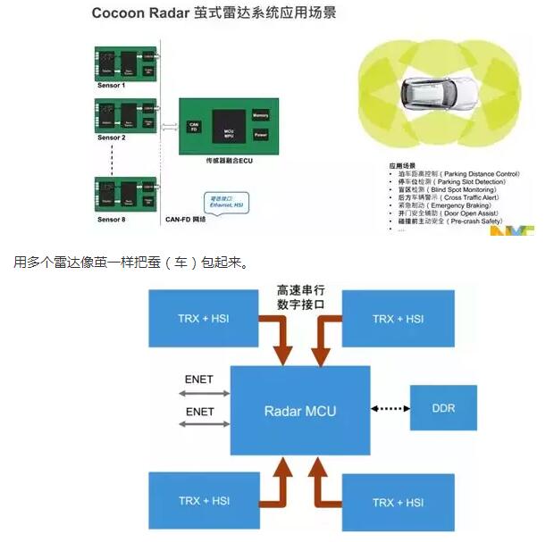 德州仪器不仅说是图像传感器,更是在接下来的文档里将4个AWR1243级联,达到高分辨率图像。不过这个还是有点夸张了,德州仪器可能是特别强调级联雷达的高分辨率,但要说光学图像级的分辨率还是不可能的。NXP则提出蚕茧式(Cocoon)毫米波雷达概念。也有可能是级联应用。