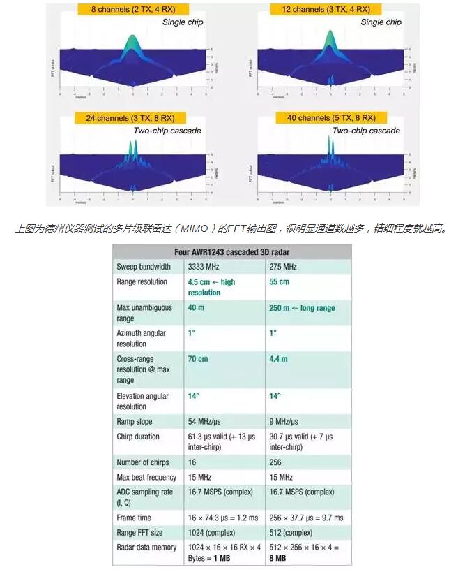 德州仪器使用4个3发4收的AWR1243雷达,就是192个虚拟通道(天线或者叫阵列)。